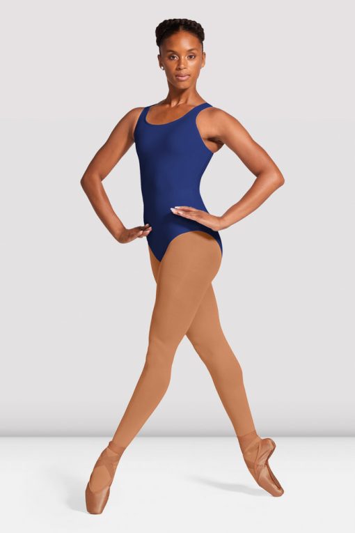 Our essential basic tank leotard is a BLOCH must-have! Suitable for a wide range of dance and gymnastics activities. Scoop front and moderate scoop back Wide range of classic dance colors Dark colors have front shelf lining, light colors have full front lining Ballet leg line